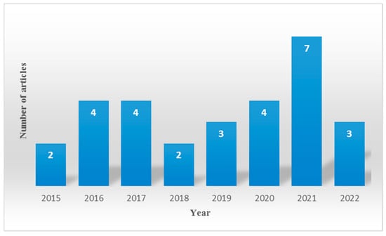 Number of studies related to genetic influence on human exposure to mercury and intoxication published during 2015–2022, grouped per year. Details of the studies can be found in Table 1.