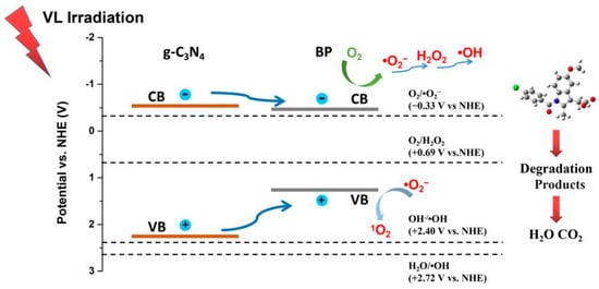 Proposed photocatalytic reaction mechanism of 8%BP-g-C3N4. Copyright Year 2022, Science of the Total Environment © Elsevier Pvt Ltd., Amsterdam, The Netherlands.