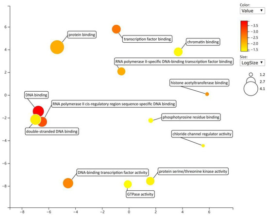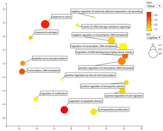 The Database for Annotation, Visualization, and Integrated Discovery (DAVID) (https://david.ncifcrf.gov/, accessed on 19 December 2022) was used for analyzing the function of enrichment of miRNA target genes [11]. The database included gene ontology (GO) analysis and pathway enrichment analysis of the Kyoto Encyclopedia of Genes and Genomes (KEGG) database. GO analysis included biological process (BP), cellular component (CC), and molecular function (MF).