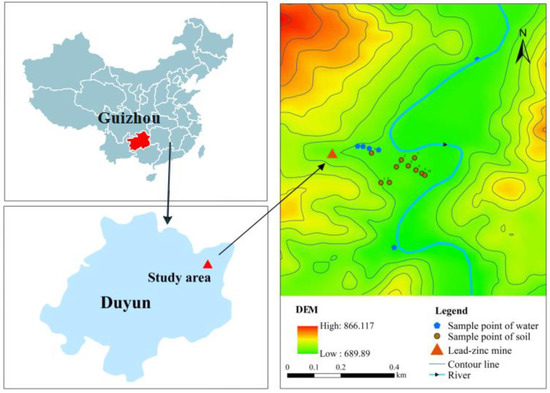China is one of the world’s largest producers and consumers of Pb and Zn. The cumulative production of Pb and Zn in China until 2007 was approximately 6.69 and 12.59 Mt, respectively, and approximately 1.62 Mt of Pb and 3.32 Mt of Zn were released into the environment due to mining, processing, and smelting activities. During mining and smelting, heavy metals can be transported to the surrounding environment through atmospheric deposition, surface water contamination (including acid mine drainage), and groundwater seepage, thereby posing serious ecological risks [1,2]. Guizhou Province is famous for its rich mineral resources and long history of nonferrous metal mining and smelting [3]. Despite the economic benefits of mining, this activity causes heavy metal pollution of nearby soils and crops. Heavy metal pollution is insidious, long-term, and irreversible, and heavy metals that enter the soil cannot be degraded and thus, they persist in the soil for a long time and accumulate, eventually causing harm to the ecological environment and human health via food chain contamination [4,5].