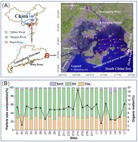 - Zhao, G.; Ye, S.; Yuan, H.; Ding, X.; Wang, J. Surface sediment properties and heavy metal pollution assessment in the Pearl River Estuary, China. Environ. Sci. Pollut. Res. 2016, 24, 2966–2979. [Google Scholar] [CrossRef]