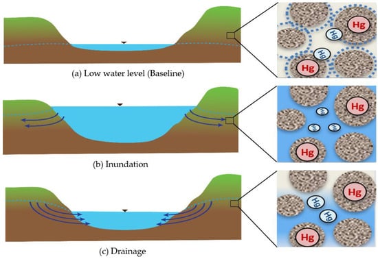 - Eckley, C.S.; Luxton, T.P.; Goetz, J.; McKernan, J. Water-level fluctuations influence sediment porewater chemistry and methylmercury production in a flood-control reservoir. Environ. Pollut. 2017, 222, 32–41. [Google Scholar] [CrossRef]