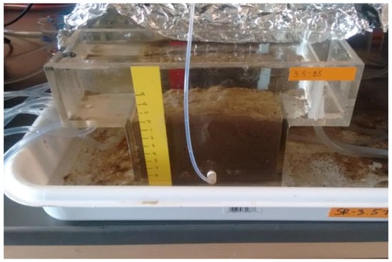 In 2017, 2018, and 2020, inorganic anions in pore water were analyzed using equilibrium diffusion sampling [34,35,36]. The sampling device was made of polycarbonate and rectangular 60.5 × 10.3 × 2.4 cm3 with 37 cells of dimensions 1 × 6 × 0.5 cm3 spaced 0.5 cm apart. The cells are filled with distilled water spiked with potassium bromide (~100 mg/L of Br−) and covered by a 0.45 µm Nylon membrane (Sterlitech, Kent, WA, USA) and a 10 µm Nylon mesh (Component Supply, Sparta, TN, USA) for protection of the membrane. The membrane/mesh layers were held in place with an acrylic cover plate and stainless-steel screws. Once the sampler was deployed, dissolved species diffuse across the membrane into the cells. Water samples were collected from the reservoirs via a syringe and filtered (0.45 µm) before direct analysis by ion chromatography.