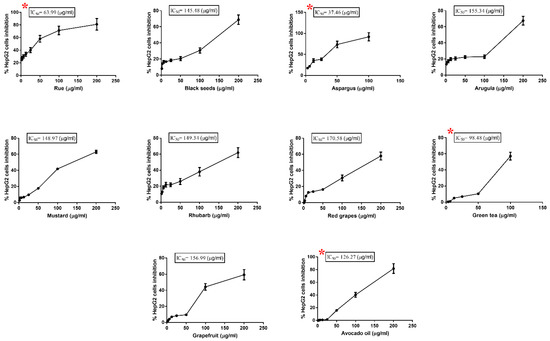 3.1. Cytotoxic Effect of Plant Extracts on HepG2 Cell