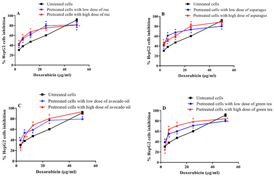 3.3. Cytotoxic Effect of Doxorubicin on Pretreated and Untreated HepG2 Cells