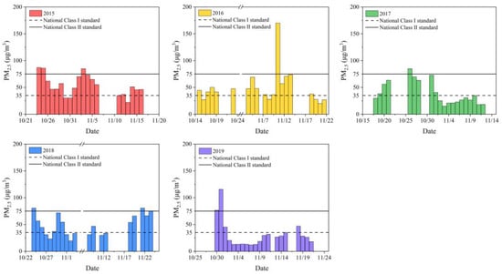 Daily PM2.5 concentrations in Nanjing Jiangbei New Area during the sampling period from 2015 to 2019.