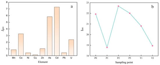 Mean plot of soil uranium and heavy metal accumulation index (a) and sum plot (b) of a uranium mining area in northern Guangdong.
