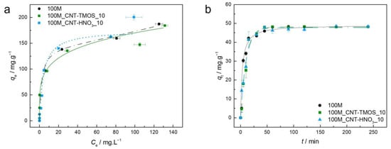 - Rafati, L.; Ehrampoush, M.H.; Rafati, A.A.; Mokhtari, M.; Mahvi, A.H. Modeling of Adsorption Kinetic and Equilibrium Isotherms of Naproxen onto Functionalized Nano-Clay Composite Adsorbent. J. Mol. Liq. 2016, 224, 832–841. [Google Scholar] [CrossRef]
