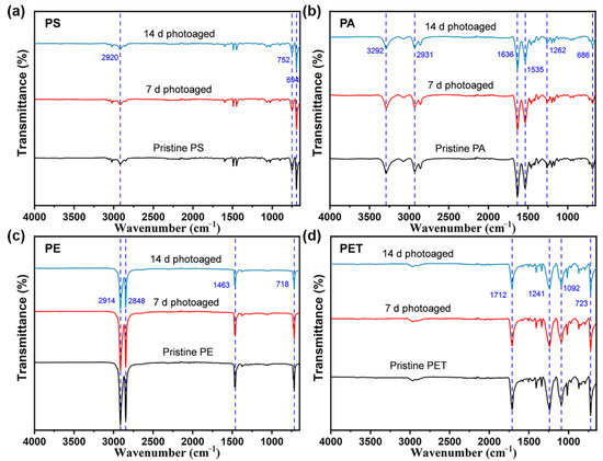 3.2. The FTIR Analysis of Photoaging MPs