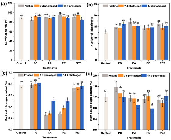 - Li, S.; Wang, T.; Guo, J.; Dong, Y.; Wang, Z.; Gong, L.; Li, X. Polystyrene microplastics disturb the redox homeostasis, carbohydrate metabolism and phytohormone regulatory network in barley. J. Hazard. Mater. 2021, 415, 125614. [Google Scholar] [CrossRef] [PubMed]