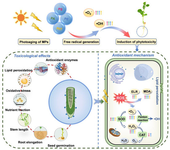 Kang, M.; Liu, Y.; Wang, H.; Weng, Y.; Gong, D.; Bai, X. Physiological Toxicity and Antioxidant Mechanism of Photoaging Microplastics on Pisum sativum L. Seedlings. Toxics 2023, 11, 242. https://doi.org/10.3390/toxics11030242