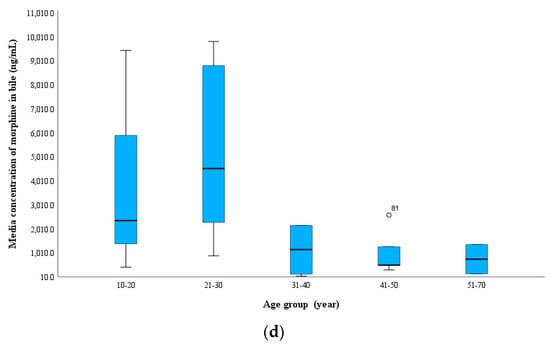 - Maskell, P.D.; Wilson, N.E.; Seetohul, L.N.; Crichton, M.L.; Beer, L.J.; Drummond, G.; de Paoli, G. Postmortem Tissue Distribution of Morphine and Its Metabolites in a Series of Heroin-Related Deaths. Drug Test. Anal. 2019, 11, 292–304. [Google Scholar] [CrossRef] [PubMed]