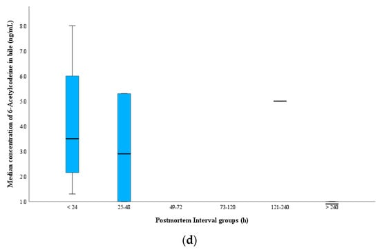 - Al-Asmari, A.I. Postmortem Fluid Concentrations of Heroin Biomarkers and Their Metabolites. J. Forensic Sci. 2020, 65, 570–579. [Google Scholar] [CrossRef]