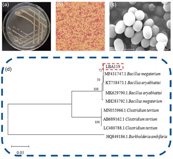 Figure 5b, inoculation of the LBA119 strain in high-concentration mercury-contaminated soil could improve the mercury removal rate compared with the control group, thus reducing the heavy metal mercury content in the soil. In conclusion, strain LBA119 has potential applications in the bioremediation of mercury-contaminated soils.