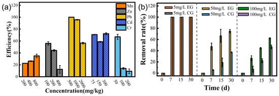 Figure 5a, the strain showed some removal of different heavy metals, with the most effective removal of Pb. According to Hoyle-Gardner, J. et al. [