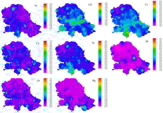 The mean ± SD (range) concentrations of As in soil samples was 6.12 ± 7.33 (0.09–140.53 mg/kg). Higher concentrations of As were observed in areas of Subotica and Zrenjanin cities (Figure 2). In most types of rocks, As is distributed rather uniformly, and its concentrations range from 0.5 to 2.5 mg/kg; only in argillaceous sediments is the average concentration high (13 mg/kg). The mean As content in soils ranges from 0.2 to 41 mg/kg []. At least 60% of the global atmospheric inputs of As are derived from natural sources, while human-caused sources of As are related to industrial activities.