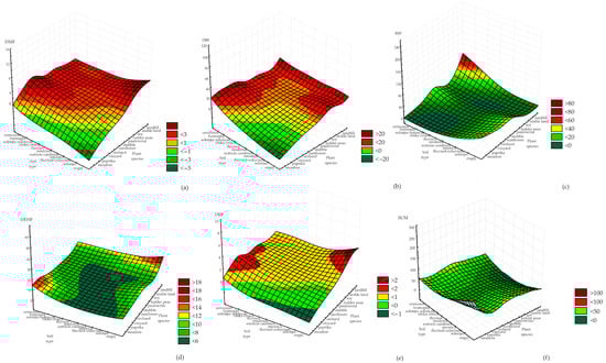 The acquired optimal neural networks were used to predict the HM and PAE concentrations based on land use and soil type. Different types of land use may affect the number of used pesticides and fertilizers, which affect the concentration of HMs in the soil []. The capacity of different soil types to adsorb HMs is diverse []. Therefore, soil types can affect the migration and distribution of HMs and organic pollutants in the soil. Few published scientific papers deal with the effect of anthropogenic, climatic, and physicochemical conditions in the environment on the concentration of PAEs in contaminated soil []. It is considered that soil type and land use affect the transport and degradation of PAEs, and thus the vertical distribution, while precipitation and temperature are likely to affect the distribution through degradation and leaching of PAEs in the soil profile []. Also, a group of authors demonstrated that environmental conditions, such as temperature, soil moisture, and oxygen levels, as well as initial substance concentrations and soil type, all impact the PAE biodegradation rate [,]. The primary land use types in the study area included meadow, arable land, oilseed rape, soybeans, corn, fodder peas, wheat, sunflower, forest, orchard, alfalfa, vineyard, paprika, field, landfill, and the main soil types were chernozem, humogley, solonetz, solonchak, alluvium, rendzina, cambisol, and vertisol.
