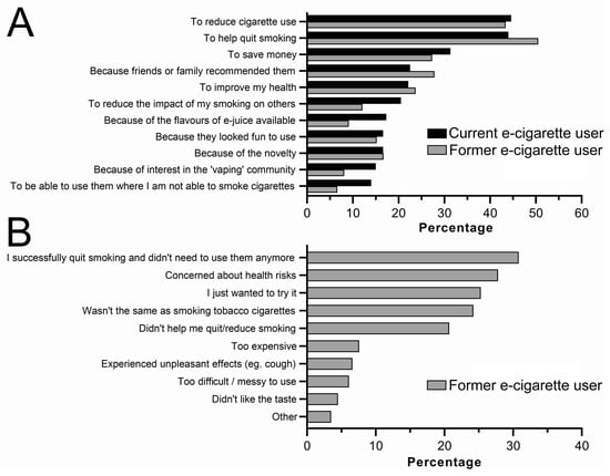 - Simonavicius, E.; McNeill, A.; Arnott, D.; Brose, L.S. What factors are associated with current smokers using or stopping e-cigarette use? Drug Alcohol Depend. 2017, 173, 139–143. [Google Scholar] [CrossRef]