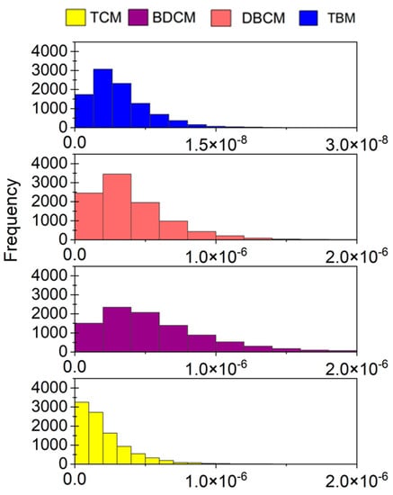 | H—Henry’s constant | TCM: 0.25, BDCM: 0.124, DBCM: 0.0526, TBM: 0.0501. | [14] |