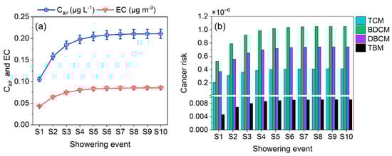 - Tovar, S.S.T.; Susa, M.R. Cancer Risk Assessment from Exposure to Trihalomethanes in Showers by Inhalation. Environ. Res. 2020, 196, 110401. [Google Scholar] [CrossRef]