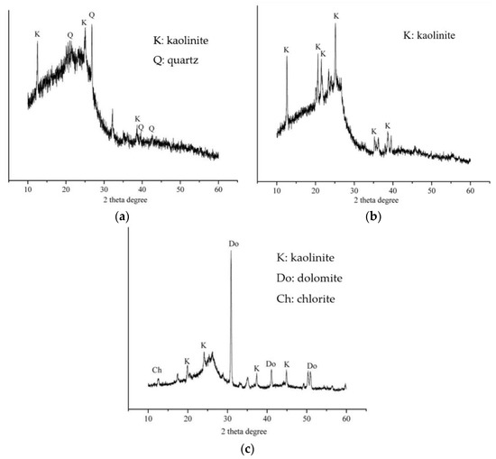 Figure 8 indicates that the mineral composition of 7-2 coal (RL) in the Lower Shihezi formation of the Huaibei coalfield is mainly kaolinite and quartz, and the mineral composition of 9 coal (QD) is mainly kaolinite. The diffraction peaks of other minerals are not obvious. The mineral composition of Shanxi formation 10 coal (WLH) is mainly kaolinite and quartz. The XRD pattern of this coal has obvious diffraction peaks of dolomite minerals, which may be related to the igneous intrusion into the coal seam.