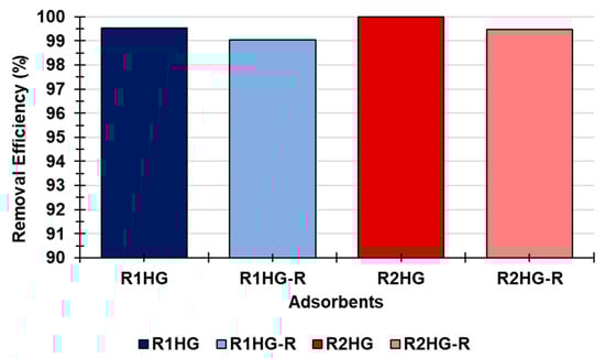 Removal efficiency of R1HG and R2HG compared with that of regenerated R1HG-R and R2HG-R.