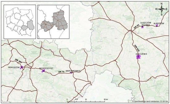 - Zawierucha, E.; Skowrońska, M.; Zawierucha, M. Chemical and Biological Properties of Agricultural Soils Located along Communication Routes. Agriculture 2022, 12, 1990. [Google Scholar] [CrossRef]