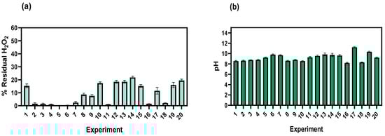 (a) Residual H2O2 percentage in each experiment. (b) Final pH in each experiment.