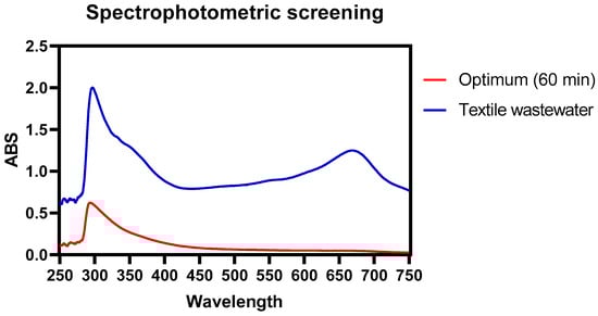 UV-vis absorbance spectra of wastewater samples without treatment and samples treated under optimal conditions (60 min).