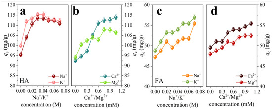 3.5. Effect of the Common Ions on Adsorption of HSs
