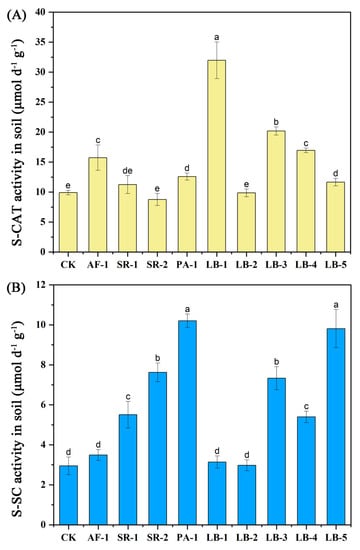 4.2. Influence of Cr-Tolerant Bacteria on Soil Enzyme Activities