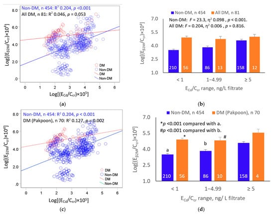 | Log2[(ECd/Ccr) × 105], µg/L filtrate | 0.181 | 0.113 | 0.375 | 0.001 | 0.269 | <0.001 |