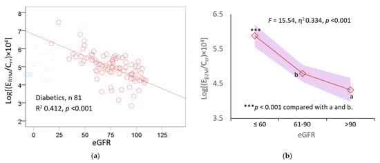 | eGFR b, mL/min/1.73 m2 | 87.4 ± 23.1 | 76.2 ± 21.0 | 89.0 ± 23.0 | <0.001 |