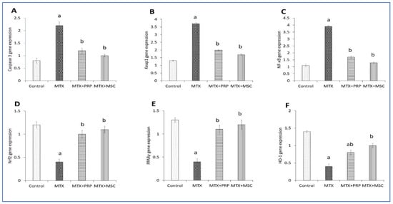 3.9. MTX and PRP Adjust the Expression Levels of Renal Gene in MTX-Intoxicated Rats