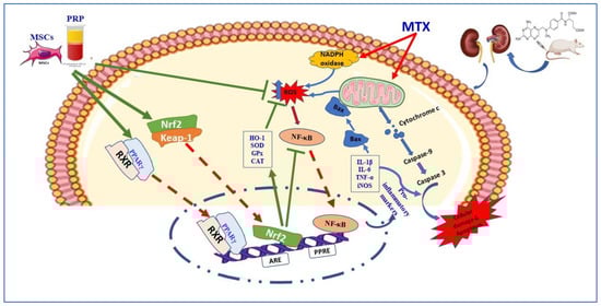 Wani, F.A.; Ibrahim, M.A.; Ameen, S.H.; Farage, A.E.; Ali, Z.A.-E.; Saleh, K.; Farag, M.M.; Sayeed, M.U.; Alruwaili, M.A.Y.; Alruwaili, A.H.F.; et al. Platelet Rich Plasma and Adipose-Derived Mesenchymal Stem Cells Mitigate Methotrexate-Induced Nephrotoxicity in Rat via Nrf2/Pparγ/HO-1 and NF-Κb/Keap1/Caspase-3 Signaling Pathways: Oxidative Stress and Apoptosis Interplay. Toxics 2023, 11, 398. https://doi.org/10.3390/toxics11050398