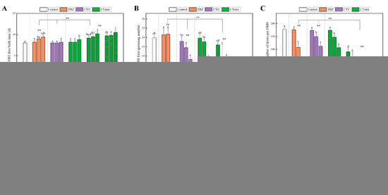 - Qi, S.; Wang, D.; Zhu, L.; Teng, M.; Wang, C.; Xue, X.; Wu, L. Neonicotinoid insecticides imidacloprid, guadipyr, and cycloxaprid induce acute oxidative stress in Daphnia magna. Ecotoxicol. Environ. Saf. 2018, 148, 352–358. [Google Scholar] [CrossRef]