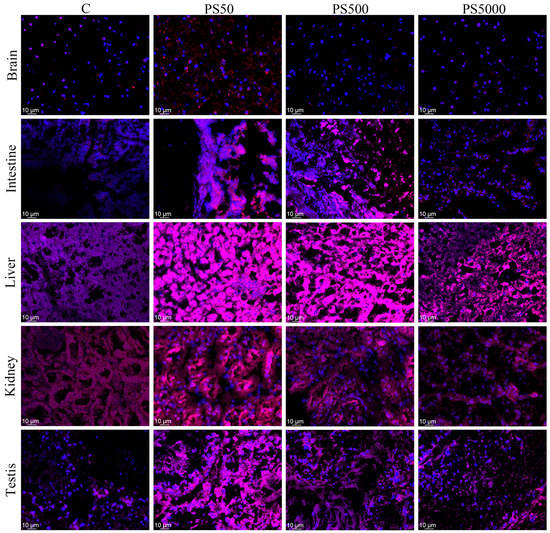 | Group | Brain (ng mg−1) | Intestine (ng mg−1) | Liver (ng mg−1) | Kidney (ng mg−1) | Testis (ng mg−1) |