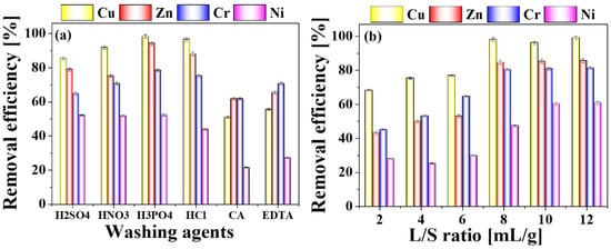 3.3.2. Effect of L/S Ratio on the Removal Efficiency of HMs