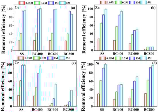3.3.3. Effect of H3PO4 Concentration on the Removal Efficiency of HMs