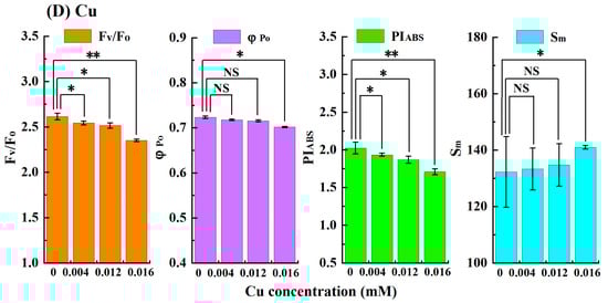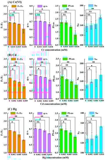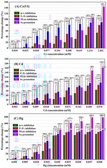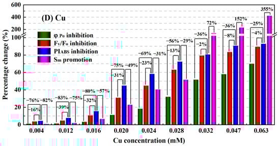 3.3. Comparison of Response Performances of φPo, FV/FO, PIABS and Sm to Four Heavy Metals Toxicity