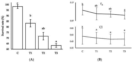 3.3. Growth Performance, Mortality Rate, and Condition Indices