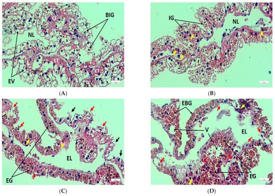 - Mona, M.H.; El-Khodary, G.M.; Abdel-Halim, K.Y.; Omran, N.E.; Abd El-Aziz, K.K.; El-Saidy, S.A. Histopathological Alterations Induced by Marine Environmental Pollutants on the Bivalve Cerastoderma glaucum (Bruguière 1789) from Temsah Lake, Suez Canal, Egypt. Environ. Sci. Pollut. Res. 2022, 29, 9971–9989. [Google Scholar] [CrossRef]