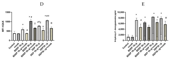 3.3. Antioxidant Response against BDEP or DEP-Induced Oxidative Damage