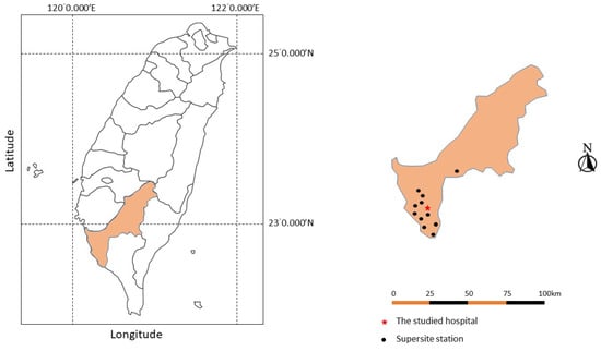 This study used air pollution data and weather conditions collected from 11 air-quality monitoring stations established in Kaohsiung City. These monitoring stations were set up by the Taiwanese Environmental Protection Administration in 1994, as shown in Figure 1. Kaohsiung is a city with a tropical climate and is situated in southern Taiwan at an elevation of approximately 9 m above sea level. Air pollutants were measured as described previously []. Briefly, the monitoring stations employed commercial monitoring instruments manufactured by Thermo Environmental Instruments, Inc. (Franklin, MA, USA) and designated by the United States Environmental Protection Agency (US EPA). The monitoring stations utilized full automation and monitored “criteria” pollutants on an hourly basis, which included particulate matter, PM10, PM2.5 (measured by beta-ray absorption), nitrogen dioxide (NO2) (measured by ultraviolet fluorescence), and ozone (O3) (measured by ultraviolet photometry).