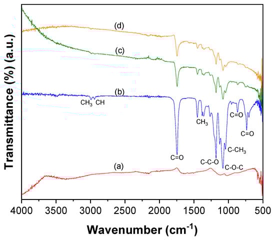 ATR–FTIR spectra of (a) CNTs–COOH, (b) PLA, (c) CNTs–PLA, and (d) CNTs–PLA–Pd.