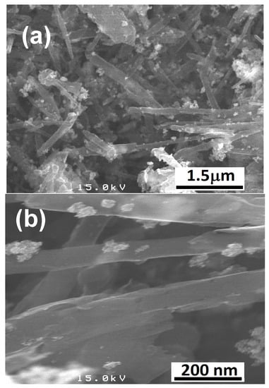 FESEM images of (a,b) CNTs–PLA–Pd.