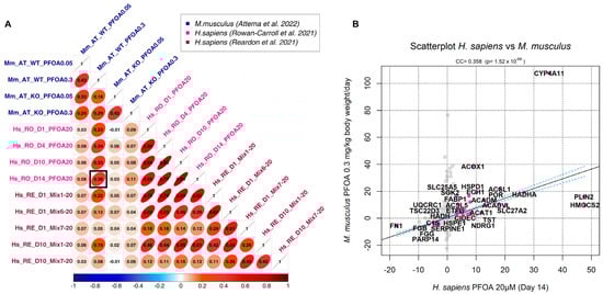 - Attema, B.; Janssen, A.W.F.; Rijkers, D.; van Schothorst, E.M.; Hooiveld, G.J.E.J.; Kersten, S. Exposure to low-dose perfluorooctanoic acid promotes hepatic steatosis and disrupts the hepatic transcriptome in mice. Mol. Metab. 2022, 66, 101602. [Google Scholar] [CrossRef]