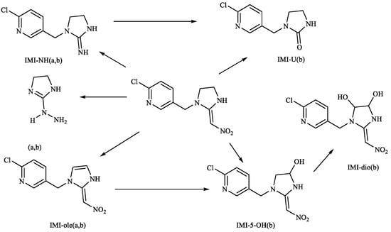 Metabolic pathways of IMI: (a) housefly: (b) honeybee.