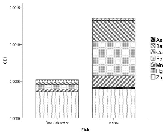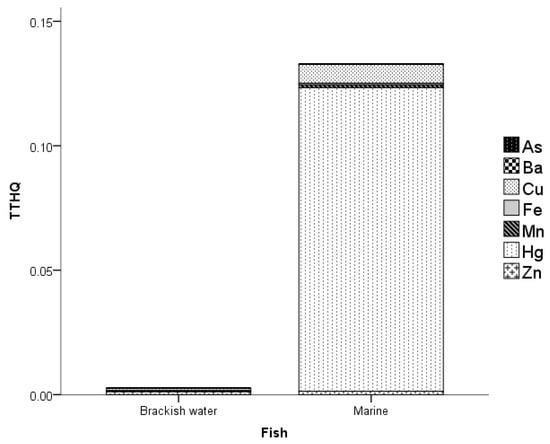 3.4. Relationship of MMs in Brackish Water and Marine Water Fish