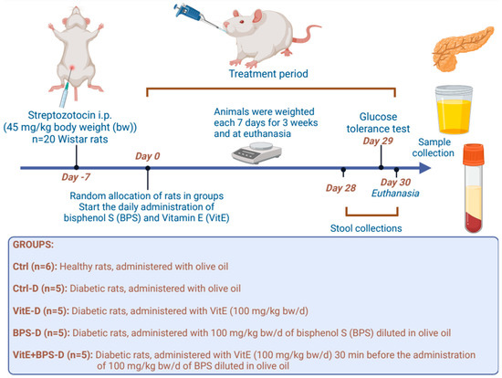 Peña-Corona, S.I.; Vargas-Estrada, D.; Chávez-Corona, J.I.; Mendoza-Rodríguez, C.A.; Caballero-Chacón, S.; Pedraza-Chaverri, J.; Gracia-Mora, M.I.; Galván-Vela, D.P.; García-Rodríguez, H.; Sánchez-Bartez, F.; et al. Vitamin E (α-Tocopherol) Does Not Ameliorate the Toxic Effect of Bisphenol S on the Metabolic Analytes and Pancreas Histoarchitecture of Diabetic Rats. Toxics 2023, 11, 626. https://doi.org/10.3390/toxics11070626